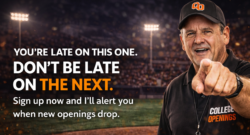 This opening has recently closed on our platform, but new college baseball openings are posted daily. If you're already a member, stay signed in to keep accessing real-time updates from college coache...